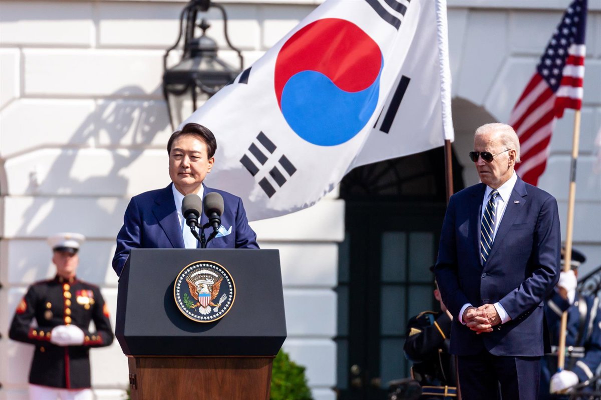 Archivo - El presidente de Estados Unidos, Joe Biden (derecha), y su homólogo surcoreano, Yoon Suk Yeol (izquierda) - Europa Press/Contacto/Allison Bailey - Archivo