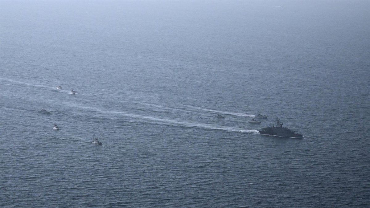 Buques de la Armada iraní durante un ejercicio militar en el Golfo Pérsico, en el sur de Irán. - Europa Press/Contacto/Sepahnews