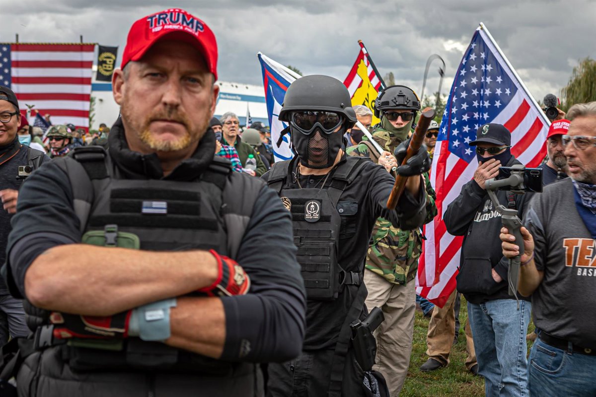 Concentración de 'Proud Boys' y otros grupos extremistas en Portland, en el noroeste de Estados Unidos. - MICHAEL NIGRO / ZUMA PRESS / CONTACTOPHOTO