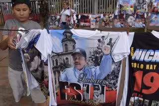 Archivo - Camisetas con la imagen de Daniel Ortega en Managua, Nicaragua