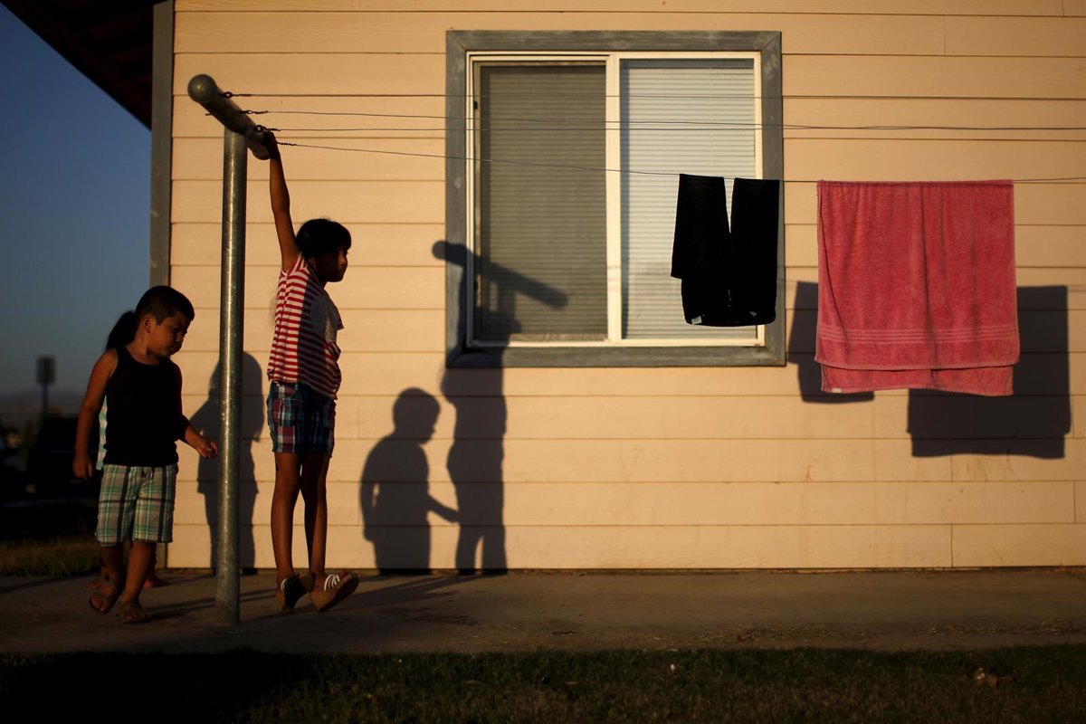Children play at a migrant farm labor housing center in Bakersfield, California, United States, July 23, 2015. California is in the fourth year of a catastrophic drought. Picture taken July 23, 2015. REUTERS/Lucy Nicholson - RTX1M2J4 - LUCY NICHOLSON / REUTERS - Archivo