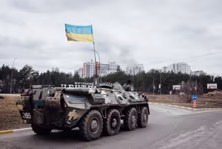 Un vehículo blindado con la bandera de Ucrania en Irpin, Ucrania - Adrien Vautier/Le Pictorium Agen / DPA
