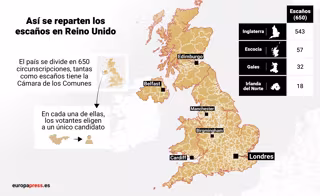 No se trata de un sistema proporcional ni los partidos presentan listas, sino que Reino Unido se divide en tantas circunscripciones como escaños tiene la Cámara de los Comunes. En cada una de ellas, los votantes eligen a un único candidato, de tal manera que gana el aspirante que más apoyo recibe --'first past the post', en inglés--.