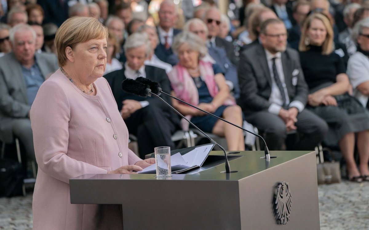 La canciller de Alemania, Angela Merkel, durante un acto en Berlín por el 75 aniversario del intento de asesinato de Adolf Hitler. - Michael Kappeler/dpa - Archivo