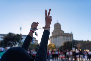 Archivo - Una mujer con unas esposas durante unas manifestaciones en contra del Gobierno iraní en Barcelona - Davide Bonaldo/SOPA Images via Z / DPA - Archivo