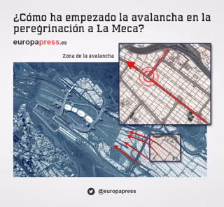 A la espera de conocer las explicaciones del Gobierno saudí, la agencia de noticias oficial SPA ha informado de que la avalancha se ha registrado cuando "varios grupos de peregrinos" han confluido "repentinamente" en la intersección de la calle 204 con la 223.