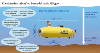 Es el caso del Abyss, un submarino no tripulado propiedad del equipo de científicos alemanes del Instituto Helmholtz de Oceanología de Kiel, que se dirige a la zona para tratar de dar con la señal de la caja negra del avión. El plazo con el que cuenta es corto, ya que las cajas negras suelen emitir señales sólo durante un mes y el avión desapareció el pasado 8 de marzo.