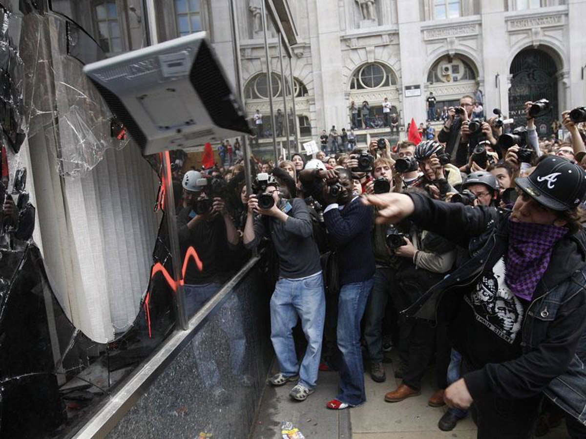 Pese a que las demostraciones se iniciaron con normalidad a partir de las 11.00 horas (una más en la Península), cuando los participantes partieron de las cuatro bocas de metro que dan acceso a la City, a medida que avanzaba la jornada, tras el punto culminante ante la sede del Banco de Inglaterra a las 12.00 horas, parte de los concentrados recrudecieron las acciones y entraron en una oficina del RBS tras haber roto los cristales.