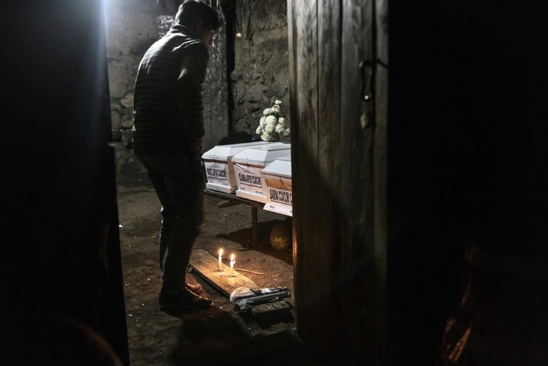 En el interior de la vivienda, antes del entierro, se realiza una vigilia con velas a los cuatro féretros de Sabina, Mario, Amelia y Yolanda.