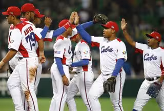 Jugadores del equipo nacional cubano de béisbol durante el mundial de Japón 2013