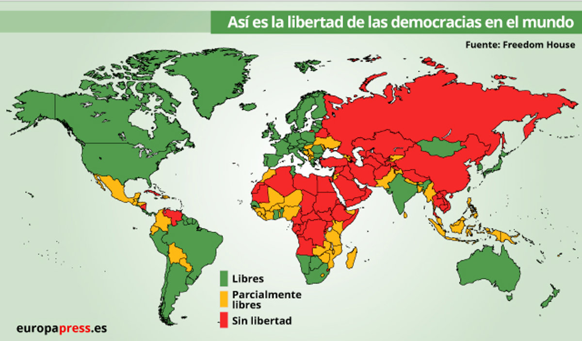 MENOS PAÍSES LIBRES Y MÁS EN LOS QUE NO HAY LIBERTAD
