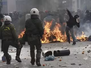 Más de 6.000 efectivos antidisturbios desplegados sólo en Atenas emplearon gas lacrimógeno para dispersar a los participantes de la violenta manifestación, que estaban lanzando piedras y bengalas contra varios comercios y cafeterías del barrio ateniense donde Grigoropoulos perdió la vida durante un altercado con un agente de Policía, quien presuntamente disparó al joven mientras tiraba al aire para dispersar a un grupo de adolescentes. Su muerte desencadenó las protestas más violentas de las últimas décadas en Grecia.