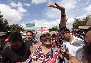 La ex primera dama ha sido rodeada por miles de personas que decían consignas en contra de Micheletti y exigiendo del regreso de Zelaya, quien ha sido reconocido por la comunidad internacional como el único presidente constitucional de Honduras.