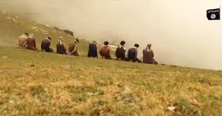En la grabación, de 30 segundos de duración, se puede ver a los talibán colocados en hilera y de rodillas en una ladera mientras prende una mecha.