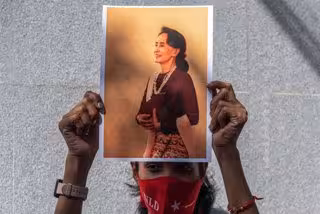 Archivo - Un manifestante sostiene un retrato de Aung San Suu Kyi durante una manifestación ante la embajada de Myanmar en Bangkok. - Peerapon Boonyakiat/SOPA Images / DPA - Archivo