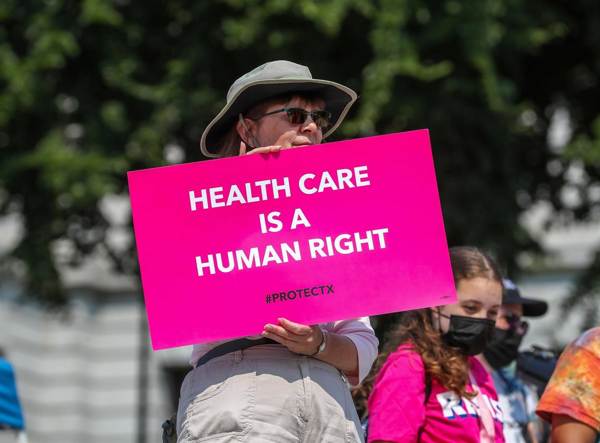 Un manifestante sostiene una pancarta frente al Capitolio del Estado de Pensilvania durante la Concentración por los Derechos Reproductivos. - PAUL WEAVER / ZUMA PRESS / CONTACTOPHOTO