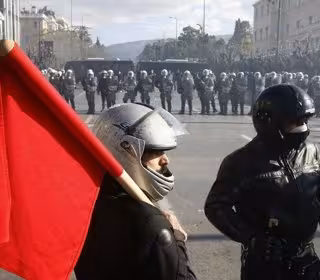 "Gobierno asesinos", coreaban enfurecidos los manifestantes congregados ante el Parlamento. Miles de personas marcharon hasta la sede parlamentaria en una concentración convocada por los sindicatos en protesta por las políticas económicas y sociales del Gobierno, que rápidamente se tornó violenta. La Policía lanzó gases lacrimógenos contra los manifestantes, que respondieron lanzando piedras, botellas y palos.
