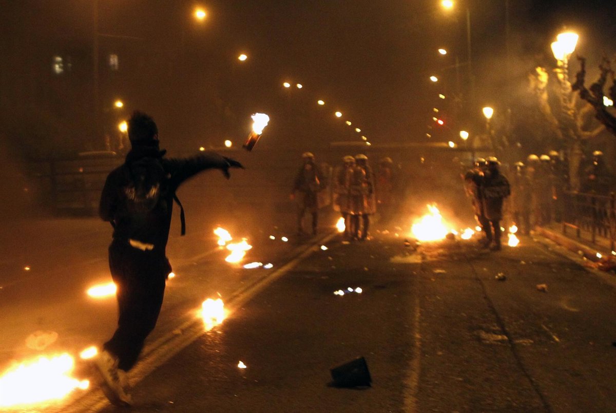 Este martes por la tarde han estallado nuevos enfrentamientos entre manifestantes y policías griegos frente al Parlamento heleno, horas después de que agentes antidisturbios tuvieran que emplear gases lacrimógenos para dispersar a jóvenes vestidos de negro que les lanzaban cócteles molotov.
