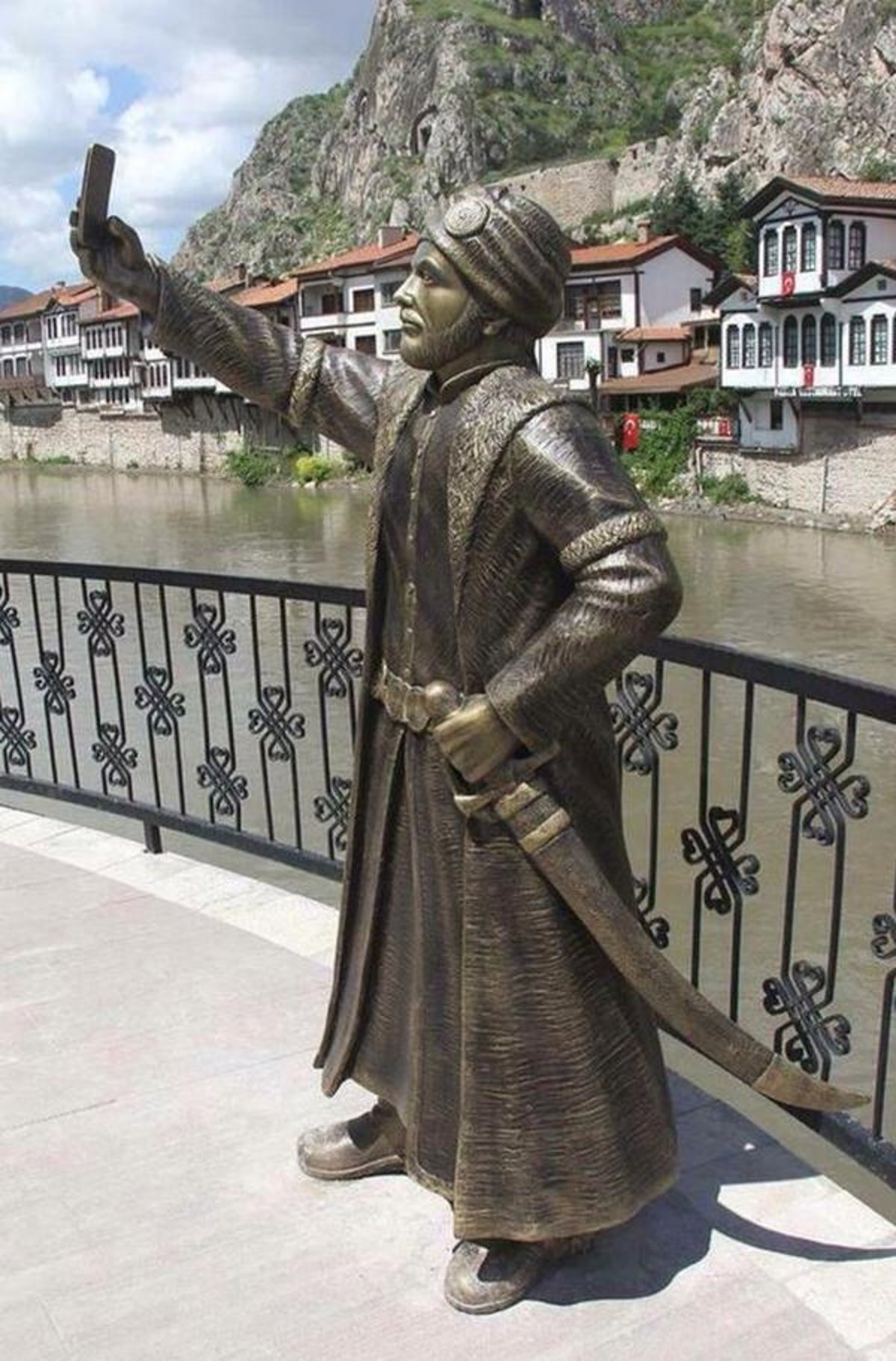 La inverosimil escultura del príncipe otomano se ha convertido en la principal atracción para los turistas de Amasya, una localidad turca a orillas del Mar Negro, donde cientos de turcos y foráneos han decidido posar junto al protagonista con el río Yesilirmak al fondo.