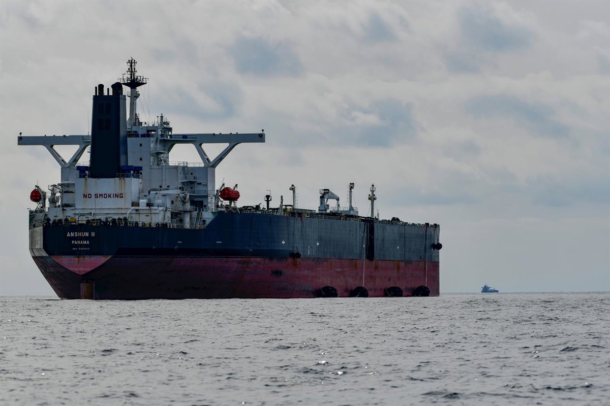 Archivo - El buque ANSHUN II con las defensas “Yokohama” preparadas y las tuberías conectadas para recibir otro petrolero y trasvasar crudo ruso, a 20 millas de Ceuta (España). - Antonio Sempere - Europa Press - Archivo