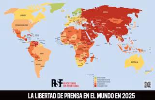 Asimismo, en 42 países, que representan a más de la mitad de la población mundial (56,7 por ciento), la situación se considera "muy grave": la libertad de prensa es inexistente y el ejercicio del periodismo es especialmente peligroso en zonas como Palestina, Uganda (143), Etiopía (145) y Ruanda (146), que han descendido en 2025 a la categoría de situación "muy grave".