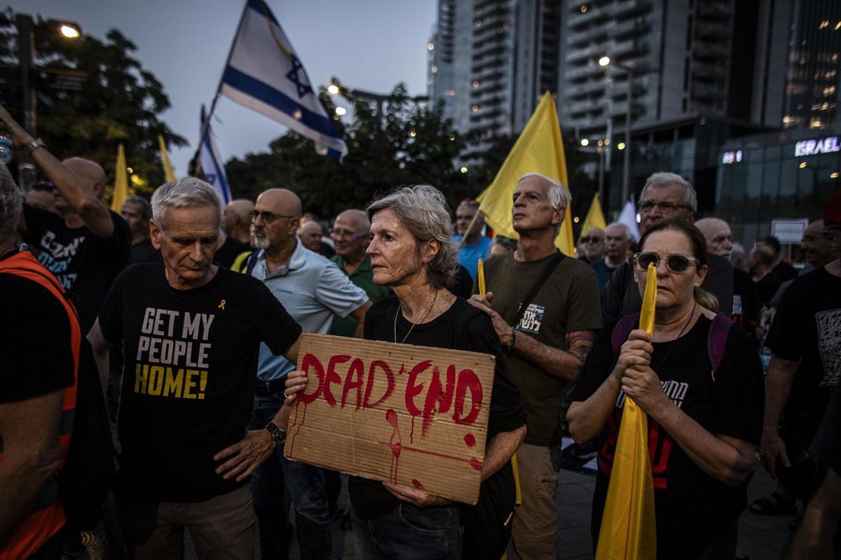 Está previsto que casi un millón de personas se concentren en la Plaza de los Rehenes de Tel Aviv en el marco de una jornada de huelga en la que hay programadas cientos de actividades y que culminará con una concentración multitudinaria frente al cuartel general militar de Kirya a última hora de la tarde.