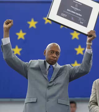El disidente cubano Guillermo Fariñas ha recogido el Premio Sájarov a la Libertad de Conciencia que le condeció el Parlamento Europeo en 2010 por su contribución a la apertura democrática en la isla tres años después. Entonces, el régimen de los Castro impidió al disidente salir de Cuba para recoger el premio y estuvo representado con una silla vacía simbólica en la ceremonia de entrega.