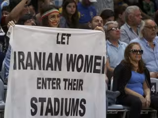 Las autoridades de Irán han prohibido a las mujeres acudir como público a los partidos de fútbol y otros deportes en el país desde la Revolución Islámica de 1979 argumentando que lo hacen para proteger a las mujeres de un ambiente predominantemente masculino y de la vista de hombres en ropa deportiva.