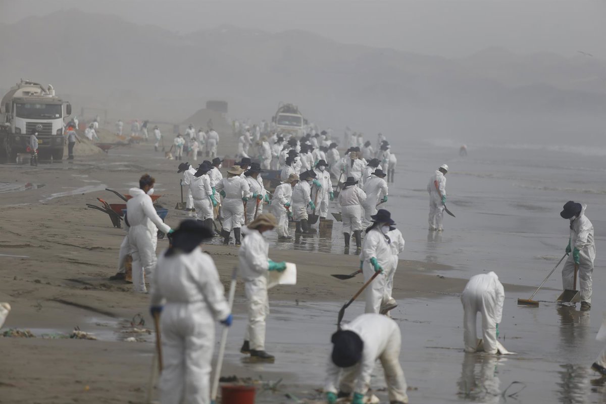 Unos 18.000 metros cuadrados de playa han sido afectados por el vertido de petróleo, una situación que, según ha defendido Repsol, ha sido causada por un "fenómeno marítimo imprevisible" a raíz del tsunami causado por la erupción de un volcán en una isla de Tonga.