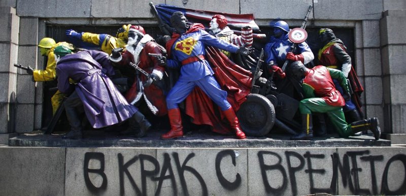 Antiguos monumentos soviéticos en Bulgaria, antaño muestras de orgullo y fuerza de la URSS, son hoy blanco de actos vandálicos y mofas por parte de algunos cuidadanos en Sofía. El último, en la imagen, fue pintado con símbolos y personajes norteamericanos en la víspera de la celebración del 123 aniversario del partido socialista de Bulgaria.