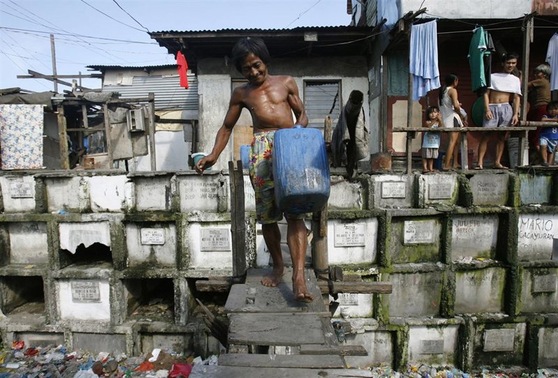 Miles de pobres de estas ciudades filipinas han convertido los cementerios públicos en sus hogares, haciendo que las tumbas y mausoleos abandonados sean sus casas. Las imágenes, de Reuters, dejan curiosas escenas para quienes están acostumbrados a dar otro uso a estos lugares de descanso eterno.