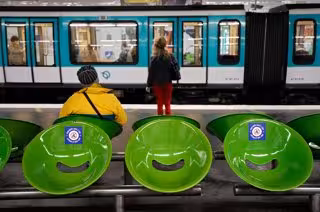 El metro de París con indicaciones para mantener el distanciamiento social ante la pandemia. - Thomas Coex/AFP/dpa