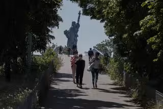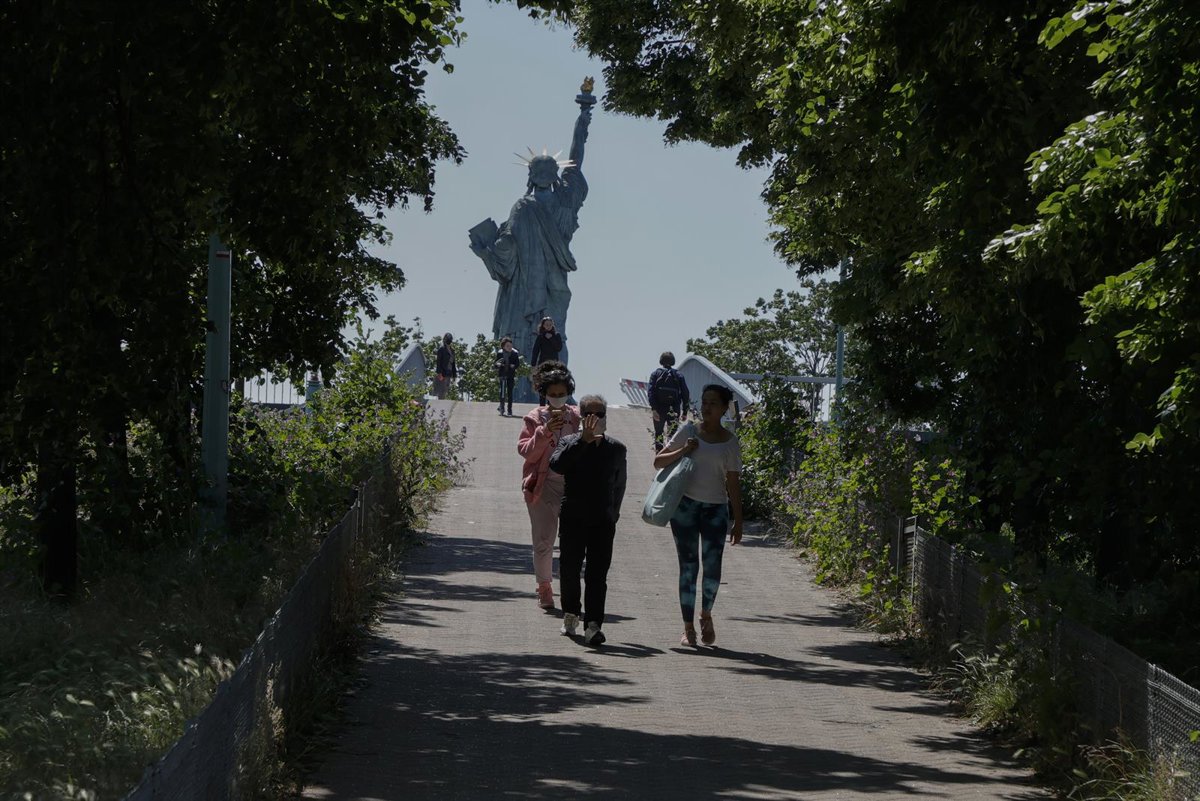 Franceses con mascarilla junto a la Estatua de la Libertad de París - Henri Szwarc