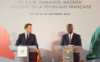 El presidente de Francia, Emmanuel Macron, y el presidente de Costa de Marfil, Alassane Outtara. - REUTERS / LUC GNAGO
