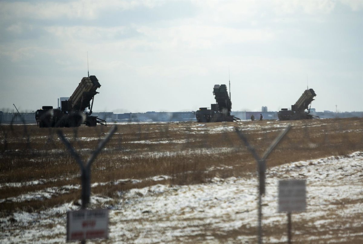 10 March 2022, Poland, Rzeszow: Three MIM-104 Patriot short-range anti-aircraft missile systems for defense against aircraft, cruise missiles and medium-range tactical ballistic missiles are located at Rzeszow Airport. Photo: Christophe Gateau/dpa - Christophe Gateau/dpa