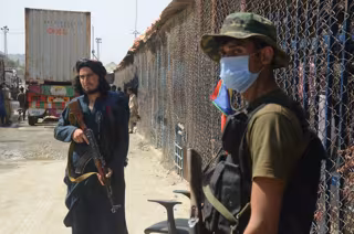 Archivo - Un miliciano talibán y un militar paquistaní en la frontera entre Afganistán y Pakistán - HUSSAIN ALI / ZUMA PRESS / CONTACTOPHOTO - Archivo