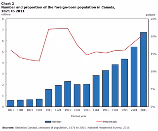 Actualmente un 22,2% de la población canadiense es inmigrante . Francia, uno de los países con mayor diversidad cultural, tiene un 11,66%.