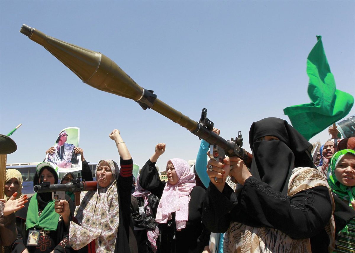 "Os advertimos de que debéis retiraros si no queréis enfrentaros a una catástrofe", ha dicho ante la multitud, que ha ondeado banderas libias y portado fotografías del mandatario.