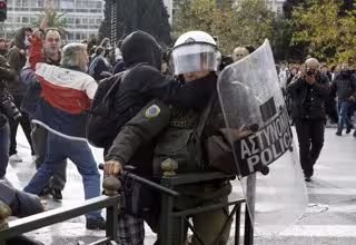 Unos 2.500 manifestantes han recorrido el centro de Atenas, algunos de los cuales han lanzado piedras y botellas contra la Policía y han destrozado paradas de autobús y escaparates de tiendas.