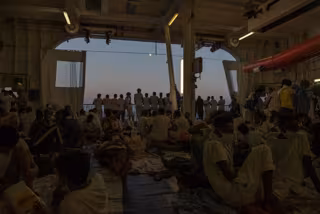 El total de rescatados están agotados tras pasar muchos días en el mar y dormir durante noches en el suelo de la cubierta de madera. Algunas llevan más de dos semanas a bordo del barco desde el primer rescate, que se produjo el 5 de agosto.