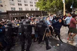La Policía argentina choca en la plaza de la Casa Rosada con los aficionados que habían acudido al velatorio de Maradona. - Alejo Manuel Avila/Le Pictorium / DPA