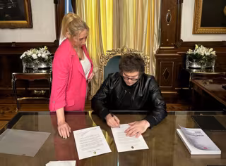 El presidente argentino, Javier Milei, firma un documento en su despacho en una imagen de archivo - PRESIDENCIA ARGENTINA