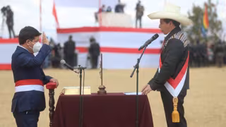 Guido Bellido toma posesión como presidente del Consejo de Ministro ante el presidente de Perú, Pedro Castillo. - TWITTER @PRESIDENCIAPERU