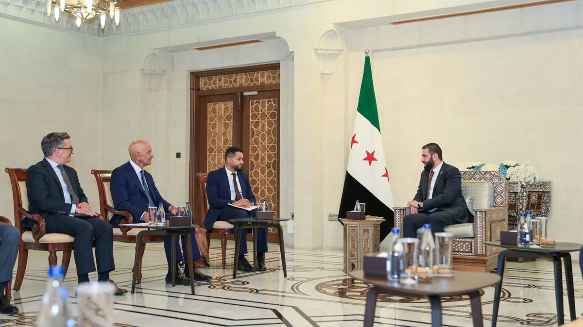 El presidente de Siria, Ahmad al Shara, recibe en Damasco al enviado especial de EEUU, Thomas Barrack, aliado de las FDS - Europa Press/Contacto/Syrian Arab News Agency apai