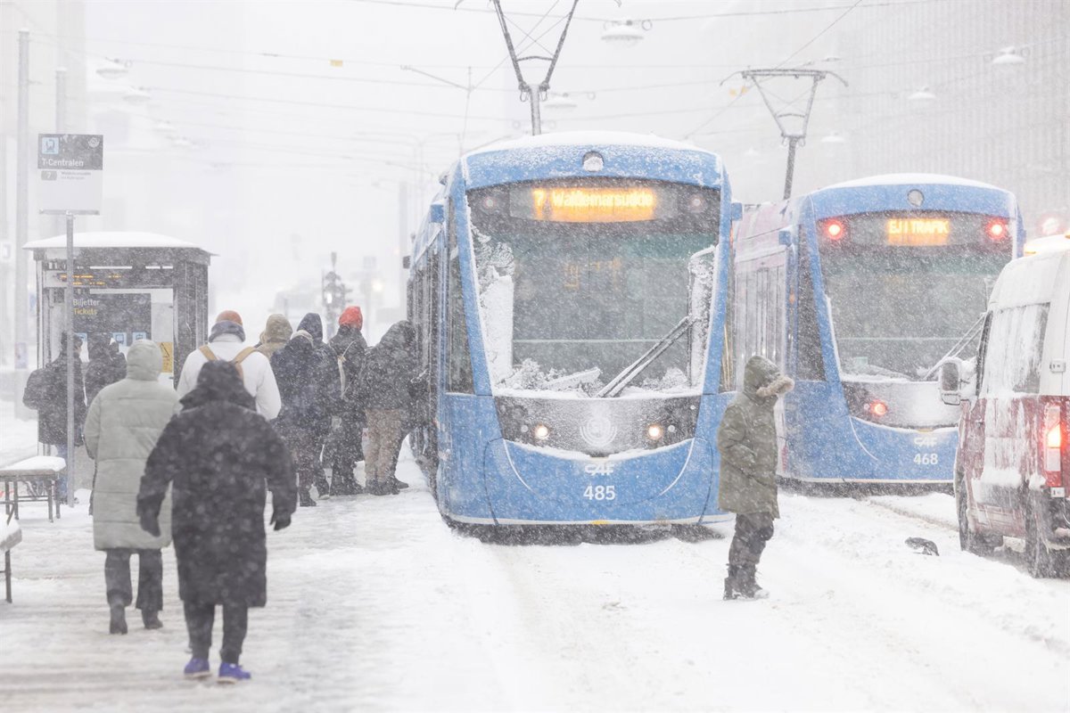 Personas junto a tranvías en Estocolmo (Suecia) tras una nevada - WEI XUECHAO / XINHUA NEWS / CONTACTOPHOTO