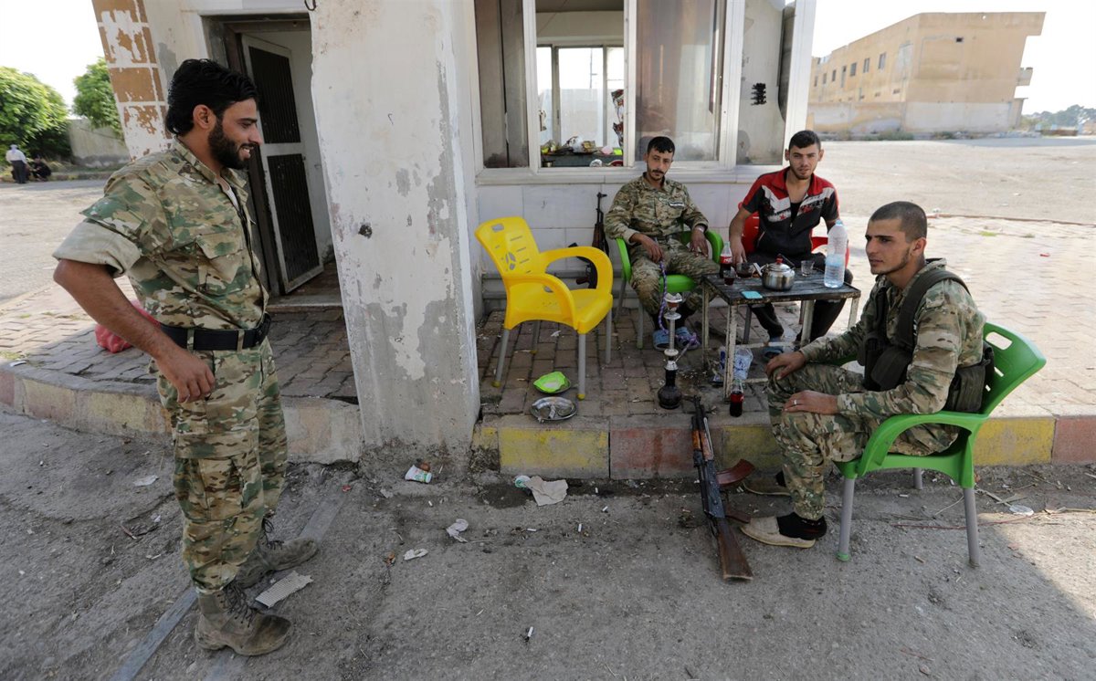 Combatientes rebeldes sirios respaldados por Turquía se sientan juntos en la ciudad fronteriza de Tal Abyad - REUTERS / KHALIL ASHAWI - Archivo