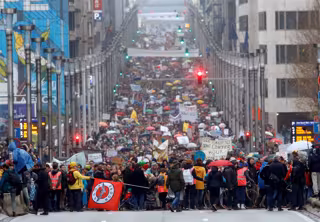 Unas 60.000 personas, según la Policía belga, se han manifestado este domingo en Bruselas para exigir a los gobiernos que respeten los compromisos adquiridos para luchar contra el cambio climático. La manifestación ha coincidido con el inicio de una nueva ronda de contactos de la COP24 en Katowice, Polonia.