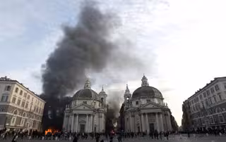 El centro de Roma ha sido completamente ocupado por los manifestantes antigubernamentales, que han lanzado petardos y cócteles molotov contra la Policía, incendiando varios vehículos, en la jornada en la que el primer ministro, Silvio Berlusconi, ha conseguido superar una moción de censura por un estrecho margen.
