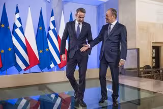Archivo - El primer ministro griego, Kyriakos Mitsotakis, junto a su homólogo polaco, Donald Tusk - Europa Press/Contacto/Attila Husejnow - Archivo
