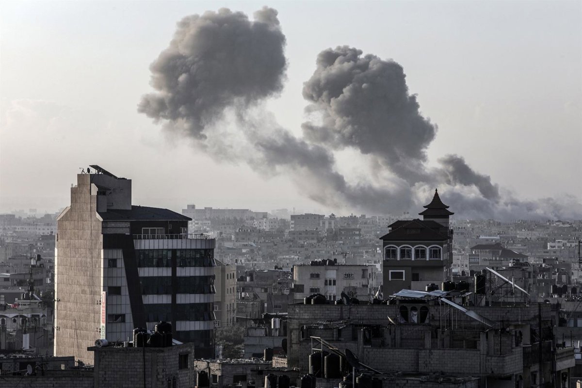 Archivo - Columnas de humo tras una serie de bombardeos del Ejército de Israel contra Rafá, en la frontera entre la franja de Gaza y Egipto (archivo) - Abed Rahim Khatib/dpa - Archivo